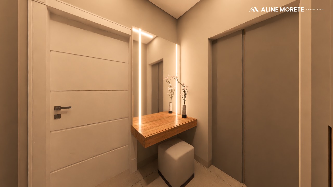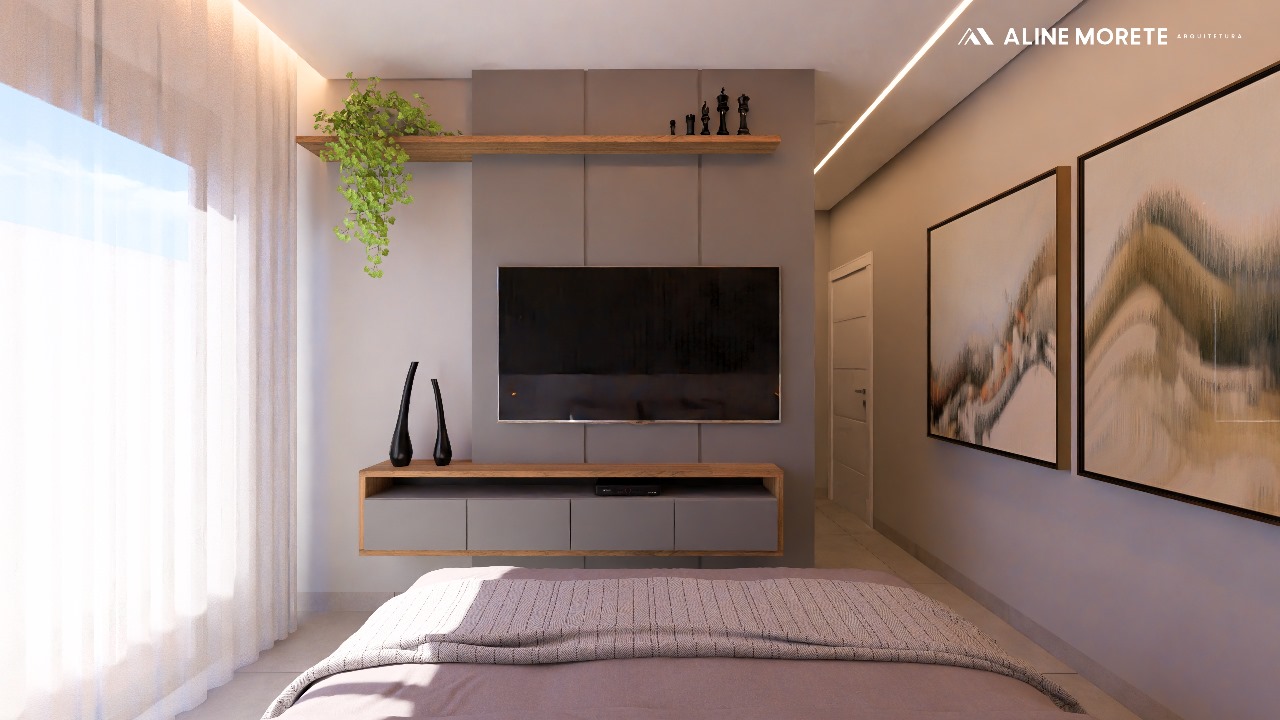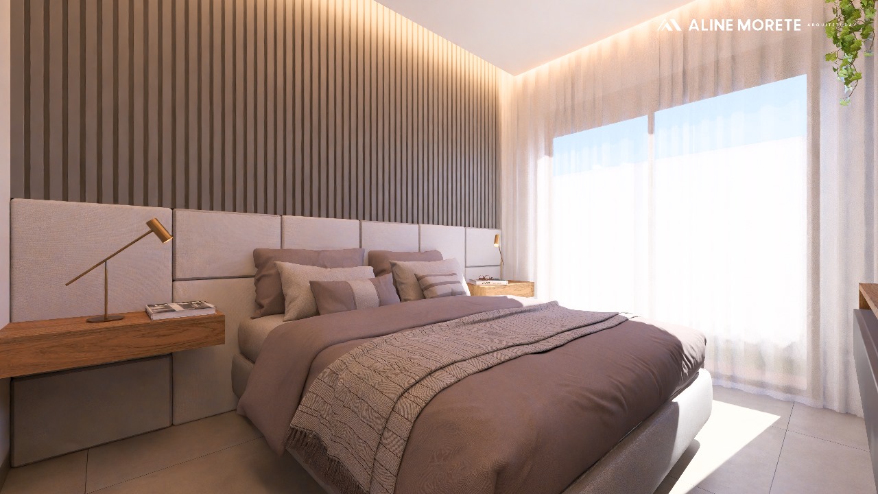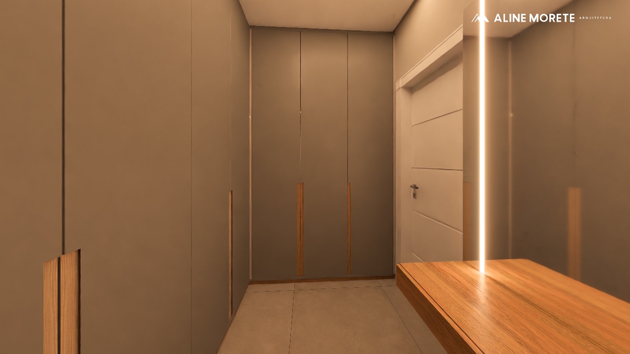 Sendo uma suíte com closet, completa em planejados;